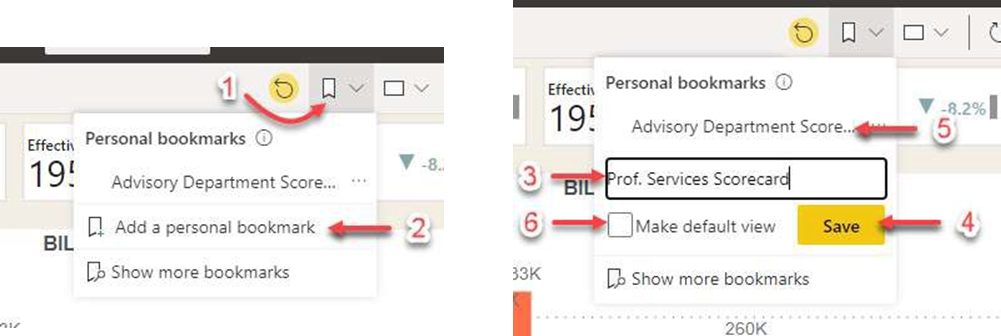 Give the bookmark a name (3) and click save (4). You will then see he bookmark