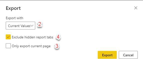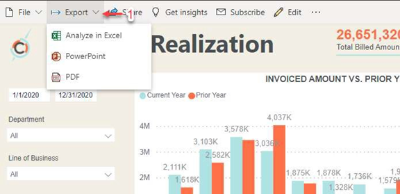 one visual. Exports can be to PDF, PowerPoint, or Excel.